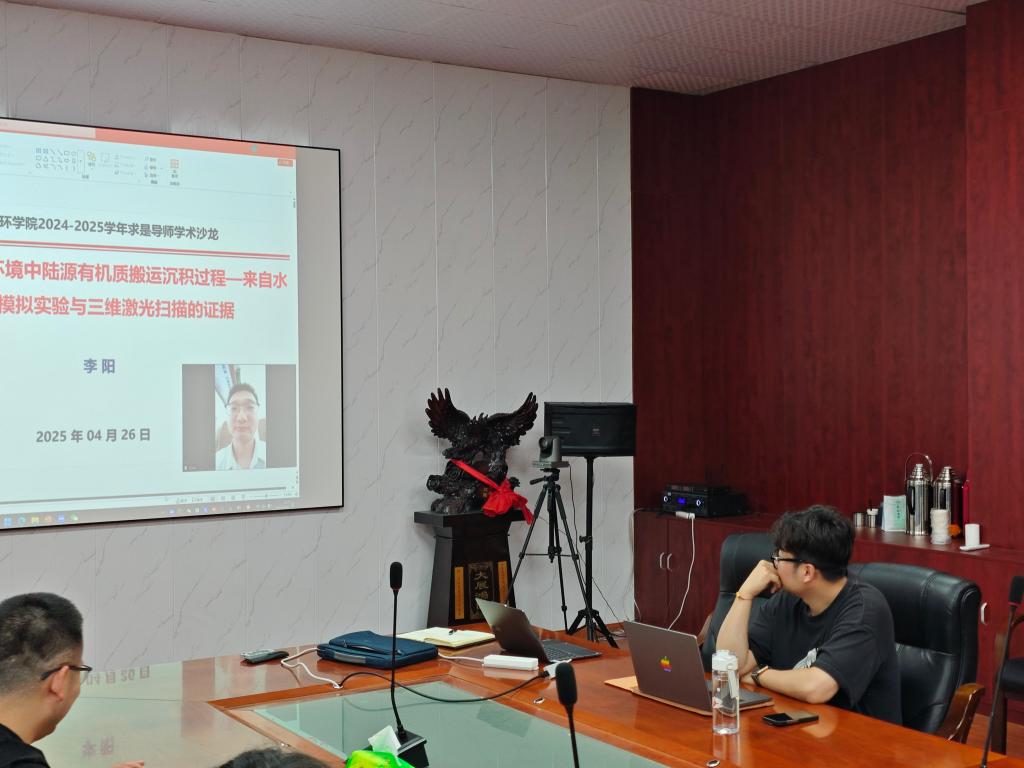 李阳老师以《海陆过渡环境中陆源有机质搬运沉积过程——来自水槽模拟实验与三维激光扫描的证据》为主题,系统介绍了南海盆地海陆过渡相烃源岩的形成机制与分布规律。他通过8组沉积模拟实验,结合三维激光扫描技术,动态再现了不同坡度、水体盐度及有机质粒度条件下陆源有机质的搬运沉积特征。实验结果表明,缓坡条件更利于有机质远距离搬运,而咸水环境中的盐絮凝作用会显著缩短其迁移范围。此外,三维激光扫描数据定量揭示了有机质在三角洲平原和前缘的差异性分布模式,为南海海域主力烃源岩的识别与预测提供了科学依据。李阳副教授强调,该项研究对指导油气勘探开发具有重要实践意义,未来将进一步结合地震资料优化预测模型。