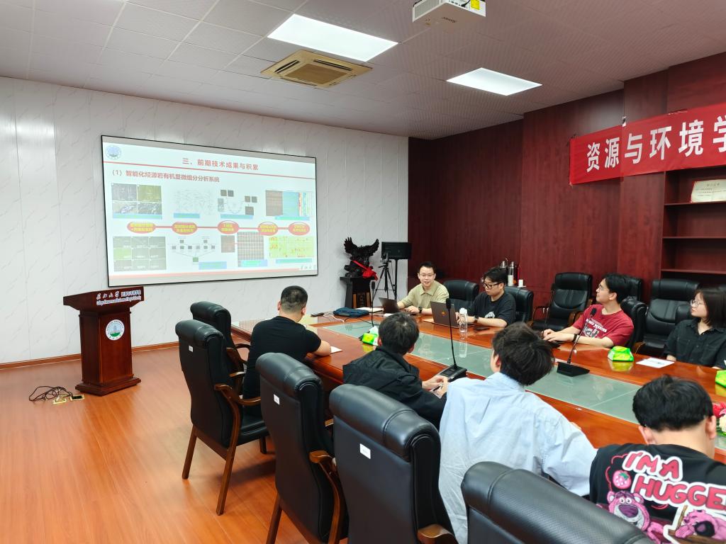苏恺明老师以《机器学习在油气地球化学中的应用进展》为题,重点分享了人工智能技术在地球化学分析中的创新成果。他详细介绍了团队开发的“智能化烃源岩有机显微组分分析系统”、“大数据视角下的石油分子地球化学智能解释与地质研究”等核心技术,并展示了基于语义分割等算法的实际应用案例。通过大规模数据训练,团队成功实现了生烃母质含量的自动化表征和油源贡献比例的智能预测。苏恺明老师指出,机器学习不仅大幅提升了实验效率,还为复杂油气藏的精细评价提供了全新视角。