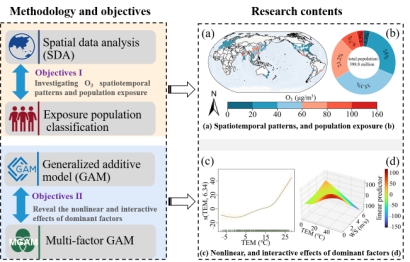 基于全球城市的气象数据,通过广义加性模型(GAM)和多因素广义加性模型(MGAM)发现,温度、相对湿度和风速是影响臭氧变化的主要驱动因素,气象因素的协同作用对于理解臭氧变化至关重要。