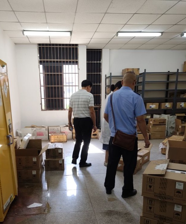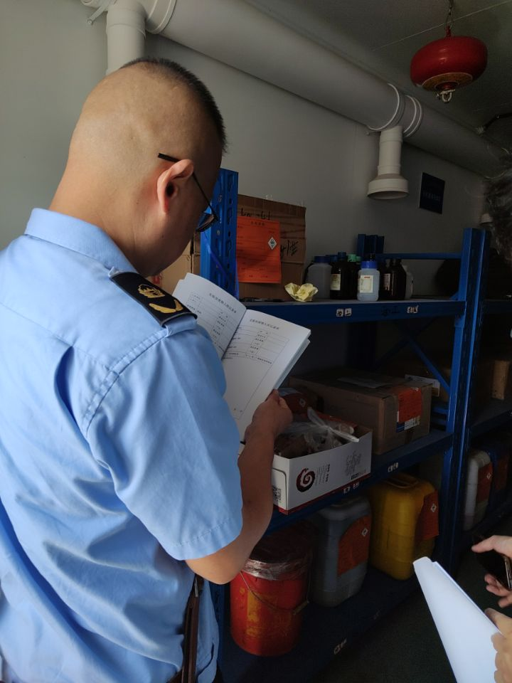 9月26日上午,蔡甸区环保部门检查工作组莅临公司开展实验室危险化学品安全检查工作。武汉校区安全与后勤保障处处长邓平,best365英国体育在线实验室相关人员参加检查活动。检查查看了危化品存储间、废物处置间。