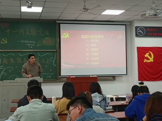 大会开始,由16名发展对象逐一宣读入党志愿书,表达自己的入党动机。申请入党的同学都真情的表达了对党的向往,对党的忠诚,表示坚定不移跟党走,为共产主义事业奋斗终生。随后依次由各入党负责人对发展对象的培养、教育以及政审情况提出意见,做出详细的评议。所有正式党员进行讨论并充分发表各自意见,拥有表决权的党员对预备党员进行了无记名投票表决,最终16名发展对象正式成为预备党员。