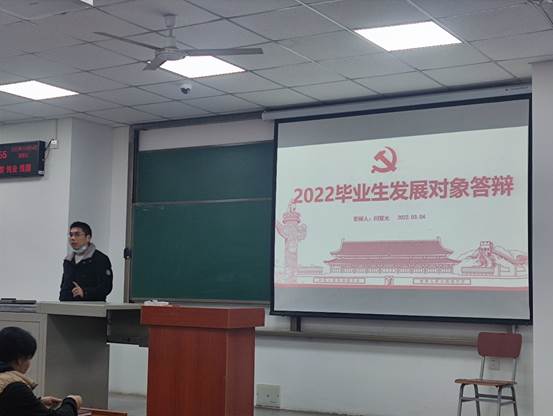 (通讯员 赵星雨/文 赵星雨/图)为严把党员发展的“入口关”,进一步提高拟发展对象的政治素质和党性修养,2022年3月4日下午四时,best365英国体育在线本科员工工作党支部于武教B106进行发展对象公开答辩。公司党委副书记范梅英老师,学工办主任李春花老师,员工辅导员黄鹏老师出席本次答辩。党支部副书记贾一凡同志主持本次会议。