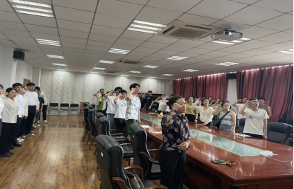 会议严格按照预备党员接收大会流程进行,会议第一项议程,与会成员全体起立,宣誓入党誓词,公司研究生党支部预备党员接收会议在庄严肃穆的宣誓声中正式拉开序幕。
