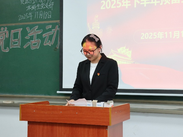 (通讯员孙文静) 2025年11月18日下午6点, 公司本科生党支部于武教A106举行2025年下半年预备党员接收暨转正大会,学工办主任李春花老师、员工党员、发展对象参会。 大会第一项,接收预备党员。3名发展对象依次上台向党组织汇报入党动机、成长收获、未来发展及需要向党组织说明的问题。发展对象入党介绍人对发展对象的情况加以说明,并对其能否入党表明意见。经支部讨论和无记名投票表决,同意接收李燕丽等3名发展对象为中共预备党员。 大会第二项,预备党员转正。申请转正的4位预备党员依次上台,向党组织汇报了预备考察期学习、工作、针对自身不足改进情况,深刻阐述了对党的认识、入党动机以及个人成长与进步。经支部大会讨论和无记名投票表决,同意答淑涵等4名同志按期转为中共正式党员。 此次支部大会的召开,为党组织注入了新鲜血液,壮大了党员队伍。李春花老师在总结讲话中强调,全体党员要时刻牢记入党初心与动机,将不足与批评化为动力,不断加强理论学习,在学习、工作和生活中发挥党员的先锋模范作用,为公司的发展和党的事业贡献自己的力量。 审核(李春花)