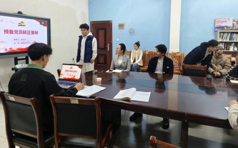 首先是接收预备党员,由发展对象苏炤新和王益瑶宣读《入党志愿书》,并向大会汇报对党的认识、入党动机、个人情况以及需要向党组织说明的问题。之后,与会党员对发展对象的汇报情况进行交流探讨,并对其能否入党表明意见。经支部讨论和投票表决,同意接收发展对象苏炤新和王益瑶为中共预备党员。