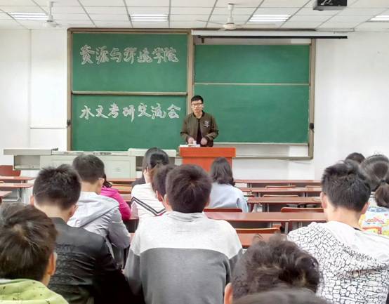 本次会议邀请了2017年成功考取各大高校研究生的13级同学。其中地化专业的陈阳同学以四百零五的高分被中国地质大学(北京)录取,他说道:“考研一定要明白自己内心最想要的是什么,千万不能盲目跟风,初衷很重要。”同样被中国地质大学(北京)录取的林涛则来自水文专业,他根据现场同学们的提问,从基础课和专业课两方面作出详细的解答。邀请到的八位考研成功的学长学姐们也从复习时间安排、复习方法、院校导师选择等方面跟在座的同学们分享了自己的心得。