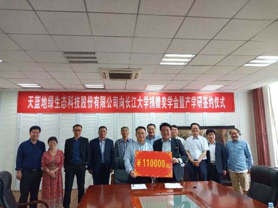 天蓝地绿公司向​best365英国体育在线捐赠11万元奖学金