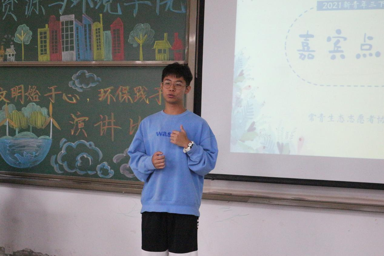 (通讯员 杨于磊/图 王潇/文)为提高公司员工的环保意识,公司在2021年10月7日星期四下午2点在武教A105举行了以“文明始于心,环保践于行”的主题演讲比赛,资环公司第十届团委员工会主席傅浩,资环公司第十届团委员工会副主席刘云昊,资环公司第十届团委员工团副张潆丹,资环公司长青志愿者协会会长申思民出席本次比赛并担任嘉宾,由望尧瑶和罗诚良主持本次比赛。