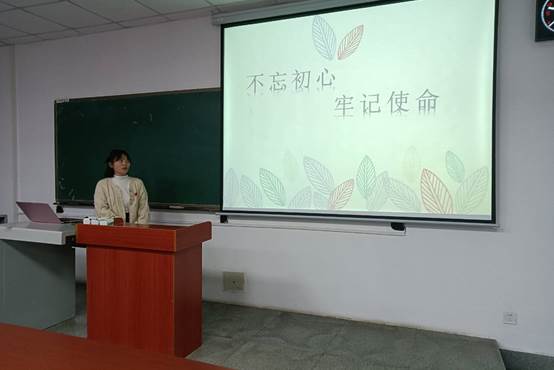 环境21901班班长许静进行了主题为“不忘初心,牢记使命”的分享。环境21901班班级凝聚力强,学风好,班级四级(91.67%)和六级(28%)通过率均位于全年级第一。作为班长,许静从班级建设,包括团建、联谊、营造学习氛围等方面;对班委的管理,包括制定学习计划,建立学习小组,开展主题班会,通知转达等方面进行分享,强调班委要有责任心,有想法、有计划、有分工。