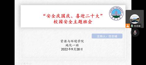 (通讯员 周繁艳 文/图)国庆佳节在即,为了提高员工的假期安全意识,2022年9月28日晚上20:00,公司研究生地化一班线上进行了“安全庆国庆,喜迎二十大”的校园安全主题班会。