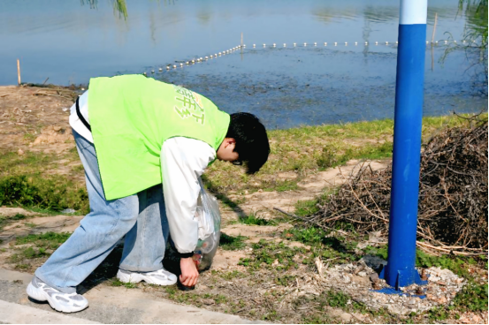 巡湖护碧水,双城接力书写生态答卷。3月20日下午,武汉校区后官湖畔春意盎然,40名志愿者身着统一服装,手持垃圾钳与环保袋,沿绿道展开“地毯式”清理。塑料瓶、烟头、废弃包装等散落垃圾被逐一拾起,分类后投入指定回收点。有位志愿者感叹:“弯腰捡起的不仅是垃圾,更是对生态的敬畏。”3月22日,荆州校区志愿者队伍奔赴荆州古城国家湿地公园,在碧水长堤旁开展巡湖行动。员工们结合专业水质检测知识,对湖岸环境进行初步评估,并向游客普及湿地保护的重要性。“用脚步丈量生态,用行动守护家乡”,成为两地志愿者的共同心声。