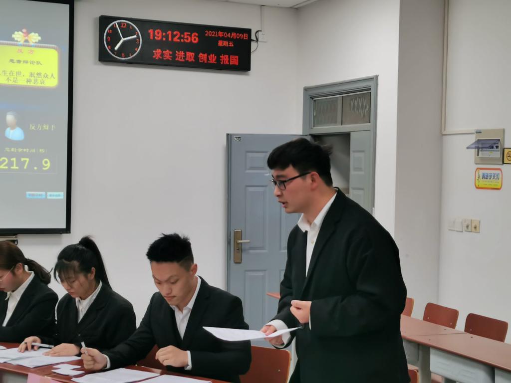 第二场的参加队伍和辩题分别是正方环境21901班,人生在世,泯然众人是一种悲哀;反方水文21901班,人生在世,泯然众人不是一种悲哀。这场辩论赛依旧精彩。正反双方辩手分别针对对方可能提出的问题作出应对,进行了激烈的争夺之后,双方依旧不分上下,最后在共同的努力下,最终由人生在世,泯然众人是一种悲哀压对方一筹。