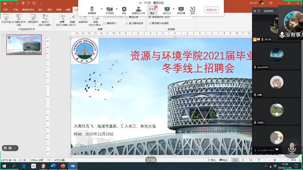 (通讯员 严丽萍 田兴民 文/图),2020年11月18日下午 3点30分best365英国体育在线通过腾讯会议举办专场线上招聘会,本次招聘会共有武汉中地环科集团有限公司、武汉猿辅导有限公司、武汉境辉环保科技有限公司、武汉链家宏业房地产经纪有限公司、武汉地大华睿地学技术有限公司和武汉时代地智科技股份有限公司6家单位参加。公司党委副书记范梅英老师、分团委书记严丽萍老师、学工办办公室主任李春花老师、毕业生代表100多人参加本次招聘会。