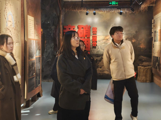 活动中,讲解员以详实的史料为线索,系统梳理了从革命战争年代到和平建设时期我国国防教育的发展脉络。同志们跟随讲解,仿佛重回那段岁月,深切体会到在物资匮乏、技术落后的条件下,国防事业从无到有、由弱变强的艰辛与伟大。在吴运铎烈士事迹展示区,大家久久驻足,深入了解这位投身革命、为国奉献的兵工英雄,感悟革命先辈忠诚于党、不畏艰险的崇高精神。在李春花老师的带领下,全体同志面向党旗庄严宣誓,铿锵誓言回荡其间,既是对革命先辈的深切缅怀,更是对初心使命的郑重承诺,充分彰显了青年学子矢志不渝跟党走的坚定信念。