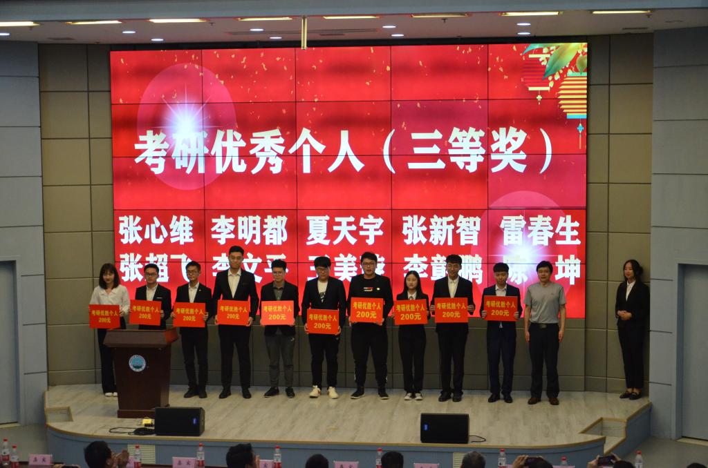 随后,蔡立梅博士宣读表彰文件。考研优秀个人与考研优胜班级分批依次上台接受表彰,并与嘉宾合影留念。