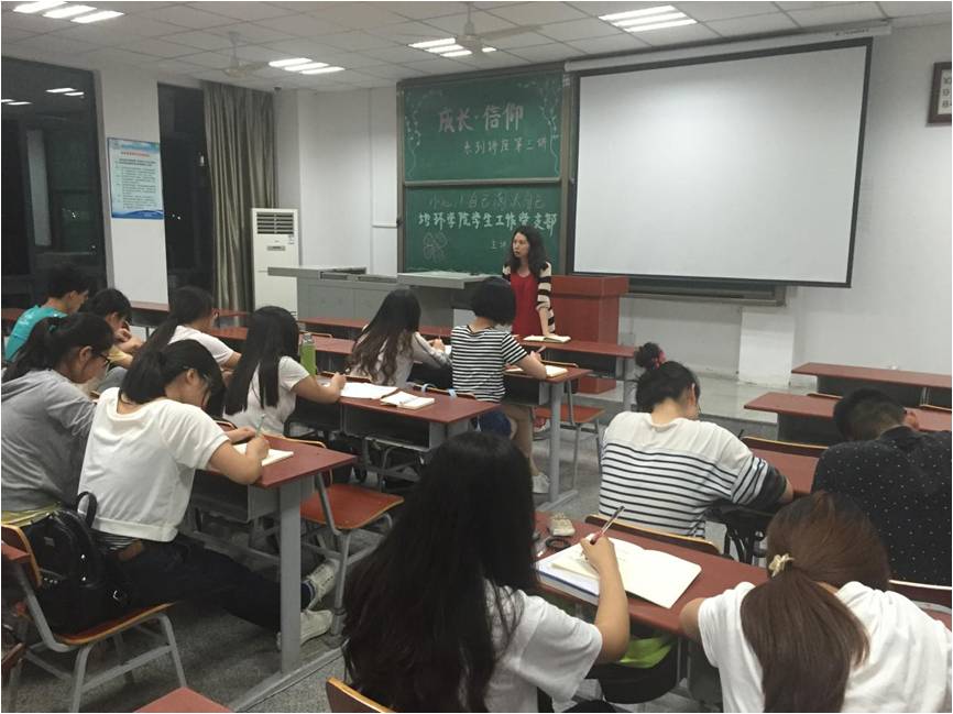 (通讯员张权/文,汤英豪/摄)5月6日晚7点,在B教211教室开展了“成长·信仰”系列讲座第三讲,主讲人为地环公司员工工作办公室主任刘娥老师。党支部全体成员和部分积极分子共20人参加了此次讲座。
