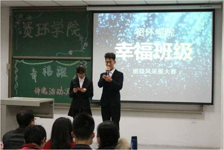 进入决赛的班级共有八个,各个班级都以PPT的形式,从学习生活,寝室文化,班级活动等方面展示了自己班级的风采。其中水文21501班别出新意,以开场视频的方式介绍了班级里的每个成员。主讲人葛振飞用他幽默风趣的语言向我们展示了一个互帮互助、积极上进的班集体。水文21502班也不甘示弱,开场便用一曲吉他独奏赢得观众的掌声。