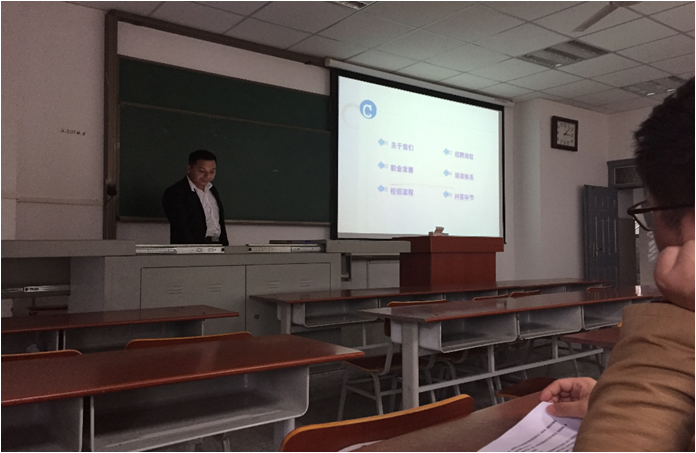 (通讯员 汤英豪 文/摄)2016年11月16日下午3时许,应best365英国体育在线员工工作办公室主任刘娥老师的邀请,武汉巨人教育来公司进行校招宣讲,宣讲地点为武培B307。