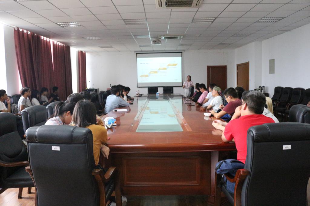 会议接近尾声,进入问答环节。肖耀同学详细解答了同学们提出的关于薪酬待遇、工作环境、用人标准等方面的问题,消除多余顾虑,使他们对自己的未来充满信心,几十张求职申请表转眼发放完毕。