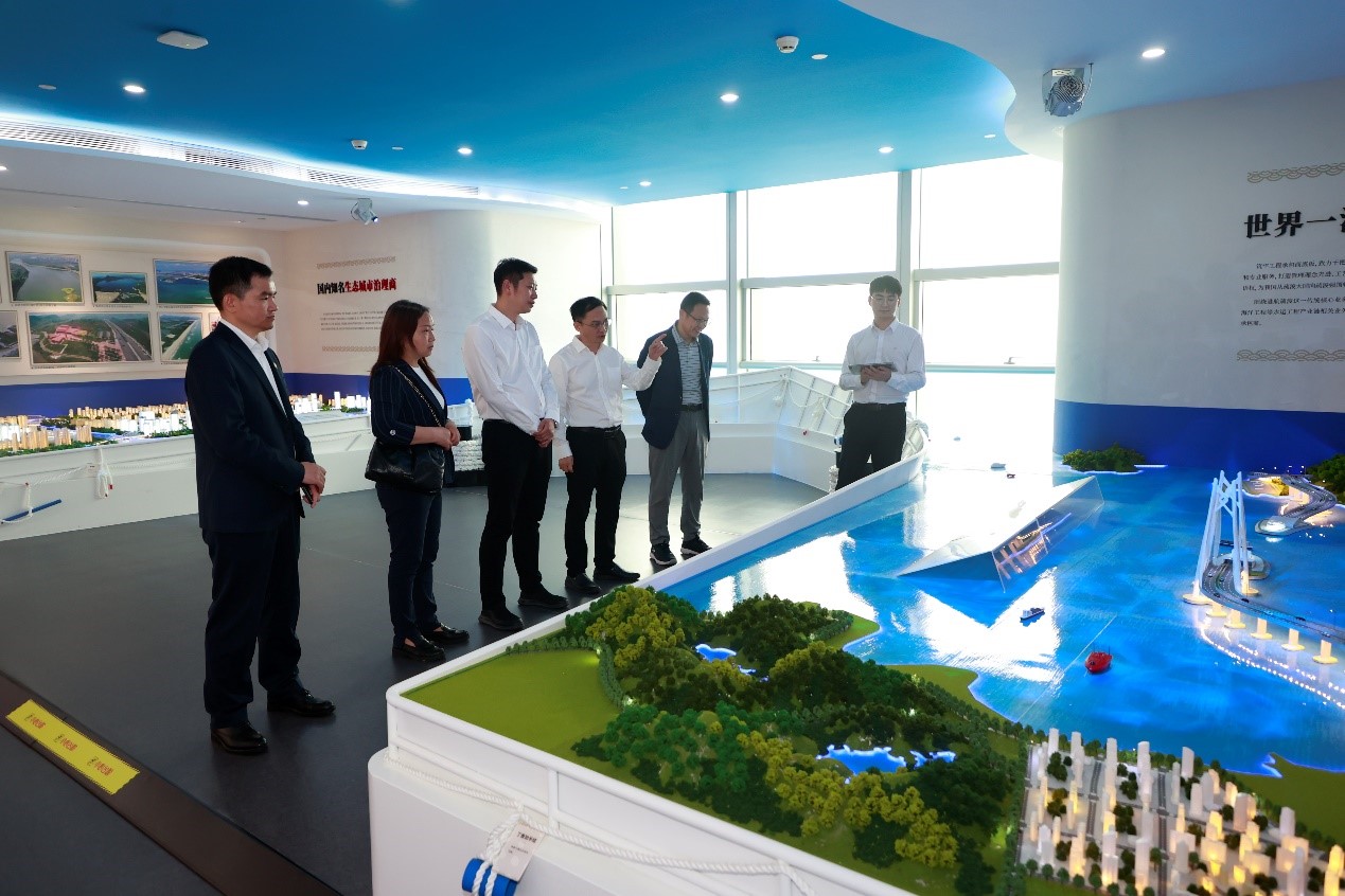 中交广航局陈林总工对公司一行表示热烈欢迎,并邀请大家一同参观公司展厅。参观过程中,陈林总工为大家介绍了中交广航局的发展理念,及在融入国家发展大局、积极践行“一带一路”倡议方面做出的杰出贡献。