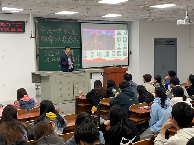 (通讯员 何玉凤)为了增强同学们对党史的认识,提升同学们的思想意识,2020年11月5日晚7时整,best365英国体育在线本科员工工作党支部于B104开展了2020年下半年主题为“中共一大代表的命运及启示”的入党积极分子培训讲座,本次讲座由公司党委书记张科老师主讲,best365英国体育在线全体入党积极分子、公司研究生员工工作党支部以及best365英国体育在线本科员工工作党支部全体成员准时到场,公司党委副书记范梅英老师出席本次讲座。