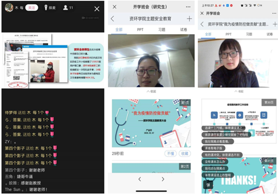 (通讯员 李婉婷 图/文)近日,新型冠状病毒感染的肺炎疫情引起了全国上下的高度重视,为了让资环学子进一步了解新型冠状病毒的相关知识并做好相应疫情的防护工作。近期公司于“雨课堂”、“QQ群”等方式召开了“我为疫情防控做贡献”的线上主题班会。本次班会分别由公司党委副书记范梅英对本科大四,best365英国体育在线团委书记严丽萍对研究生,辅导员李春花老师对本科大一至大三,主持开展。通过网络主题教育,将资环学子们紧紧相连,为打赢疫情防控阻击战贡献一份力量。