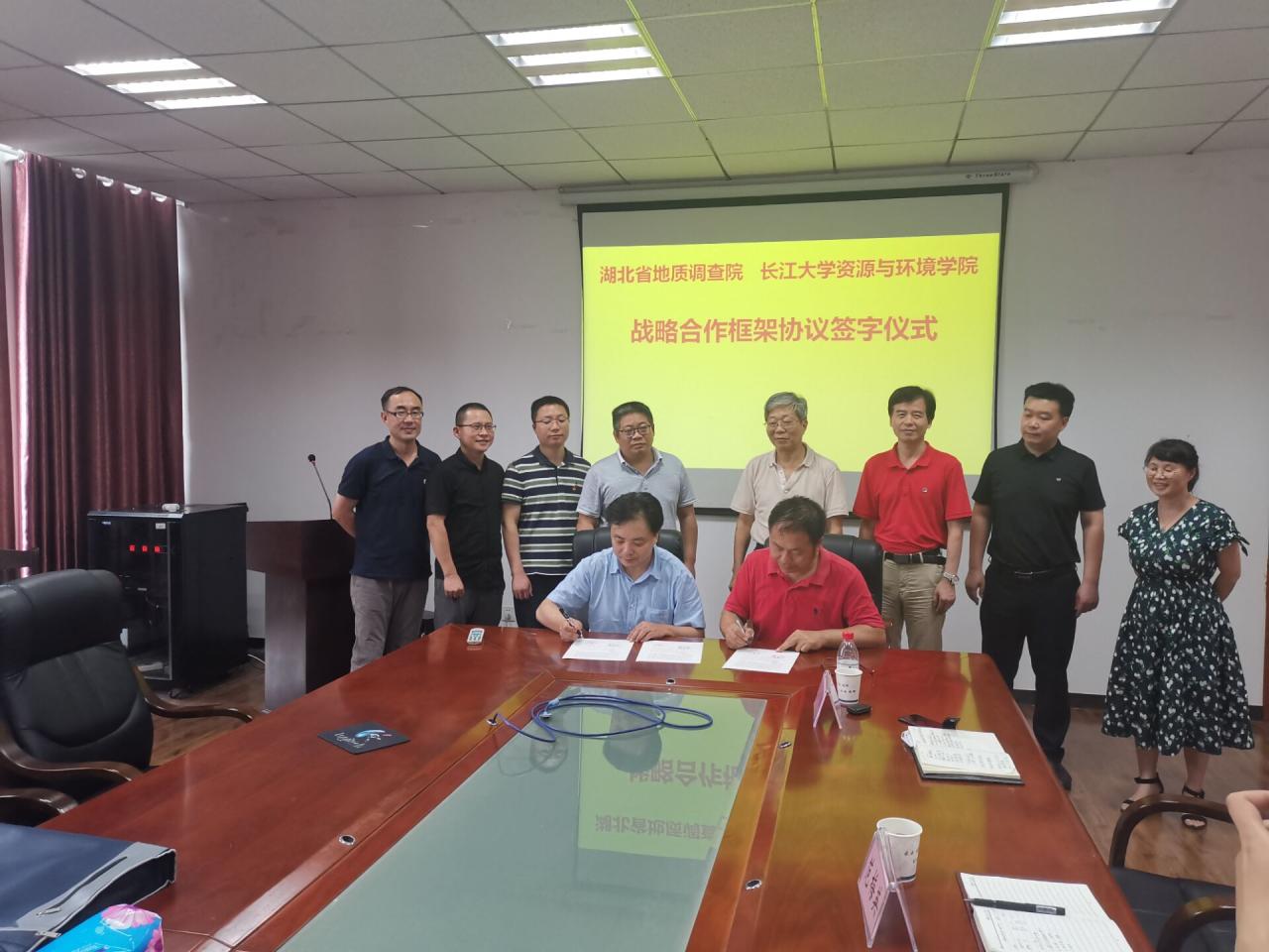 2020年7月1日下午在武汉校区,公司与湖北省地质调查院签订战略合作框架协议。湖北省地质调查院经理戴光忠、副经理孙四权和李一鸣、技术部主任胡飞,best365英国体育在线副董事长张玉清、科技处处长何文祥、公司领导及部分教师代表出席签约仪式。
