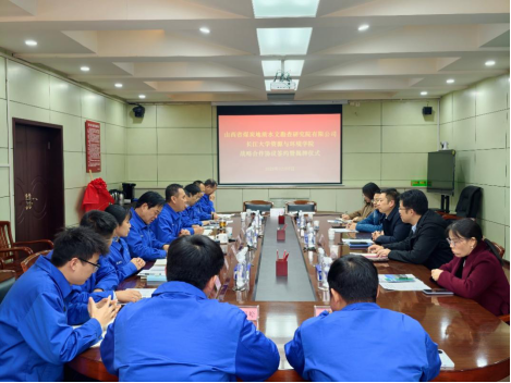 山西省煤炭地质水文勘查研究院有限公司党委书记、董事长曹拥军首先致欢迎辞。他全面介绍了水勘院的发展历程以及在新能源开发利用、煤矿防治水、水资源开发和保护等领域的实践工作。随后,公司党委书记王宁介绍了公司及公司的整体发展情况,重点阐述了公司在团队建设、人才培养和科研创新方面的成果。水文与环境系主任潘红忠则从专业角度出发,详细介绍了水文系的研究方向与特色,特别是在地热能、水资源评价与模拟等方面的积累,表达了对未来合作的高度期待。