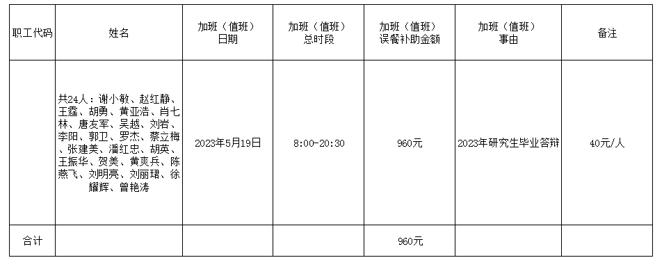 根据《best365英国体育在线加班(值班)误餐补助管理办法(试行)》(长大校发【2019】83号)文件规定,现对best365英国体育在线加班(值班)误餐情况(2023年5月19日)进行公示,如果对加班(值班)误餐情况有异议,可以通过电话或电子邮件等方式向best365英国体育在线办公室反映。